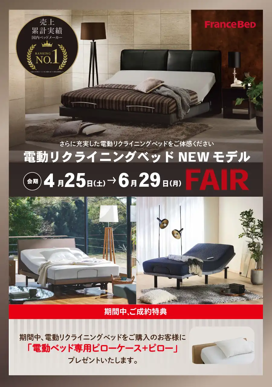 フランスベッド販売 中部支店 通話無料0800-600-3993 9:00~17:00(平日のみ) 期間中のみ直通 080-9172-6124 |