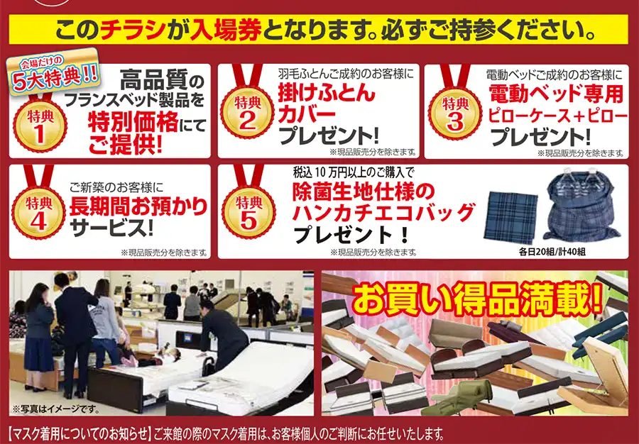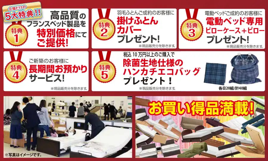 会場に展示のないフランスベッド商品もご購入可能です。(一部商品を除く)