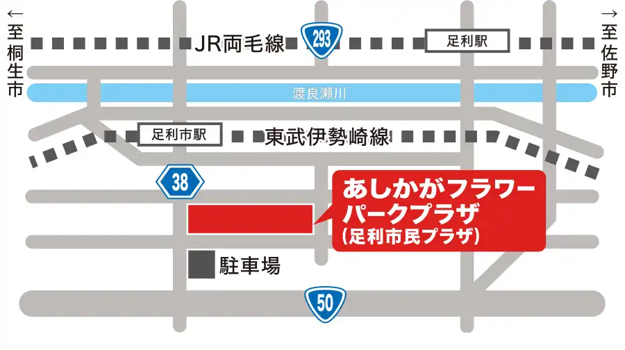 ●東武伊勢崎線「足利市」駅より生活路線バス(あしバスアッシー)をご利用の場合