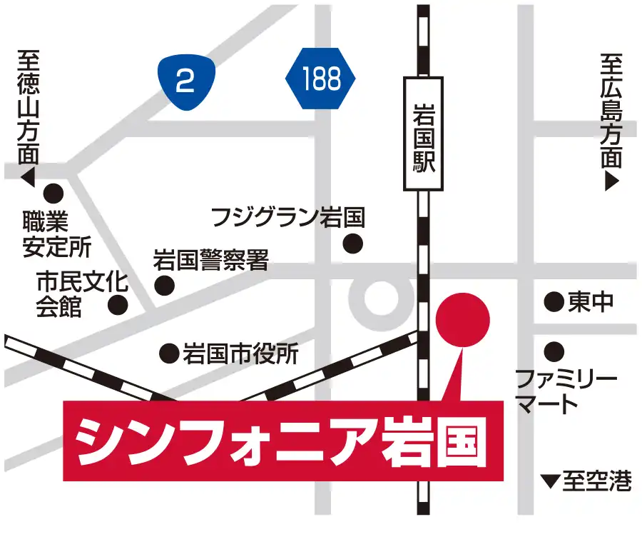 | 交通 | 【電車】 JR岩国駅から南へ約800m、徒歩約10分 【お車】 山陽自動車道岩国ICから約10km、車で約20分 【バス】 三笠橋バス停から徒歩約5分 |