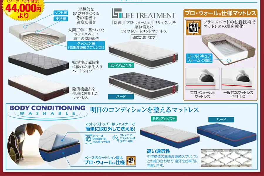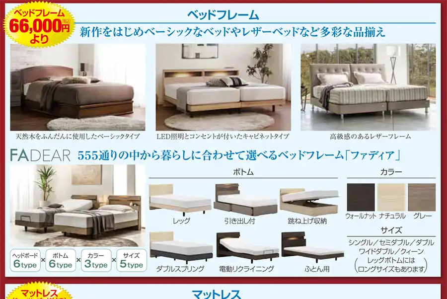 【取扱い商品】ベッドフレーム、マットレス、電動リクライニングベッド、羽毛布団、寝装品(枕・カバー類)、LTシリーズ、ラミダスほか